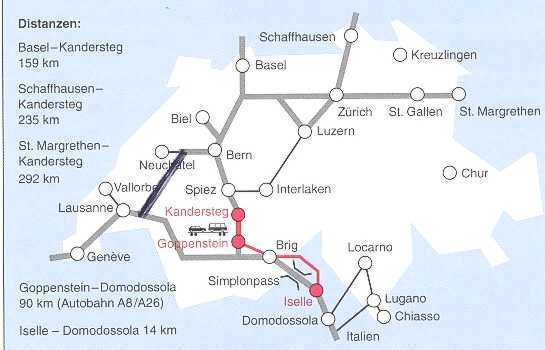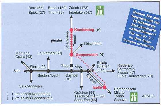 Ab Goppenstein fahren Sie bergab über Steg - Gampel bis zur Kantonsstrasse , dort am ersten Kreisverkehr nach Westen ab Richtung Sierre / Sion und über Turtmann dann nach Susten . Ab Basel bis Susten sind zu fahren ca. 180 Gesamtkilometer , oder über die Autobahn Basel - Bern ( kurz vor Bern rechts ab Richtung Lausanne ) über Neuchatel - Fribourg - Vevey - Genfer See - Monthey - Martigny - Sion - Sierre - Ost bis Autobahnende . Nach der Ausfahrt im Kreisverkehr rechts ab Richtung Visp - Brig fahren , der nächste Ort ist dann schon Susten , ( 1. Kreisverkehr rechts ab ) . Ab Basel ca. 290 Gesamtkilometer .